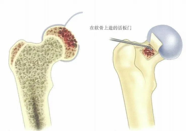 通过在髋部截骨,将健康的股骨头旋转至髋关节负重区,同时将坏死区移出负重区。