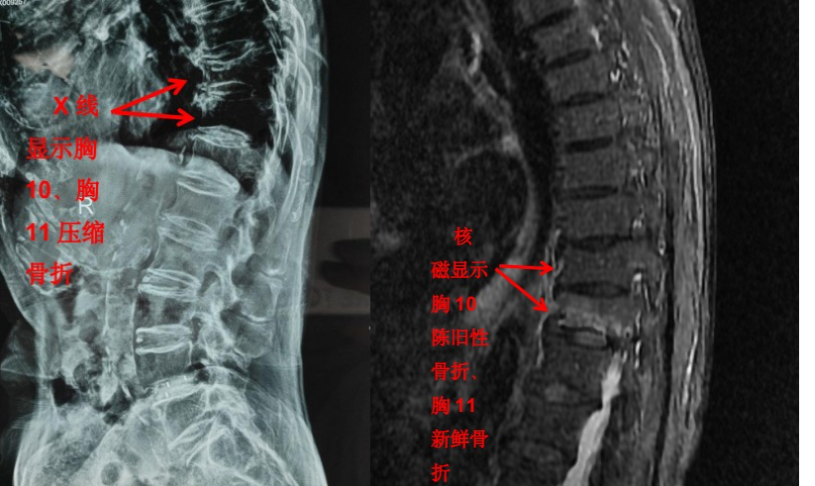 前面提到的腰椎压缩骨折,X 光片可以看出楔形变,但无法判断新鲜骨折还是陈旧骨折,进一步完善腰椎 MRI 才能明确诊断,做出下一步治疗计划。